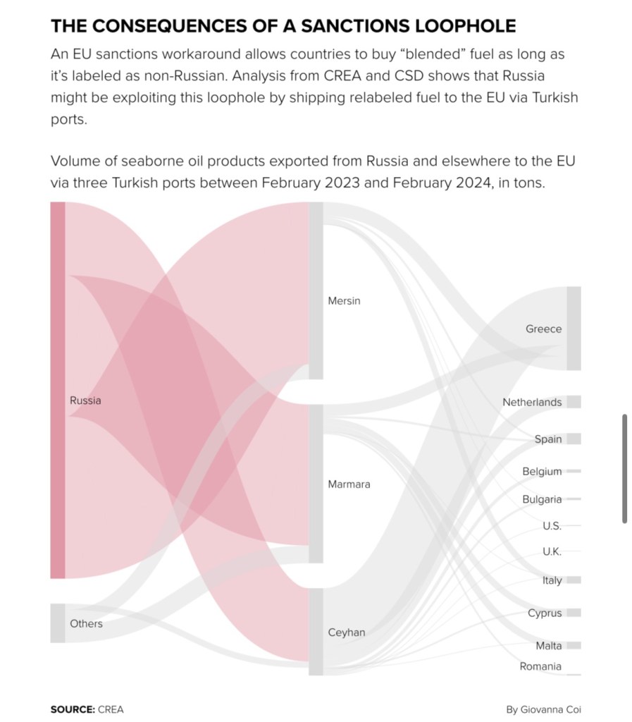 Sanctions on Russian crude oil were supposed to cut Russia off from Western energy markets. But while direct imports have been banned, Russian oil is still making its way into Western economies through a simple workaround: refining.