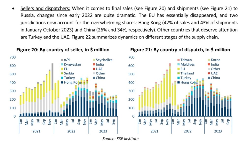 • Using intermediary buyers in Kazakhstan and China to purchase Western-made goods and then re-export them to Russia