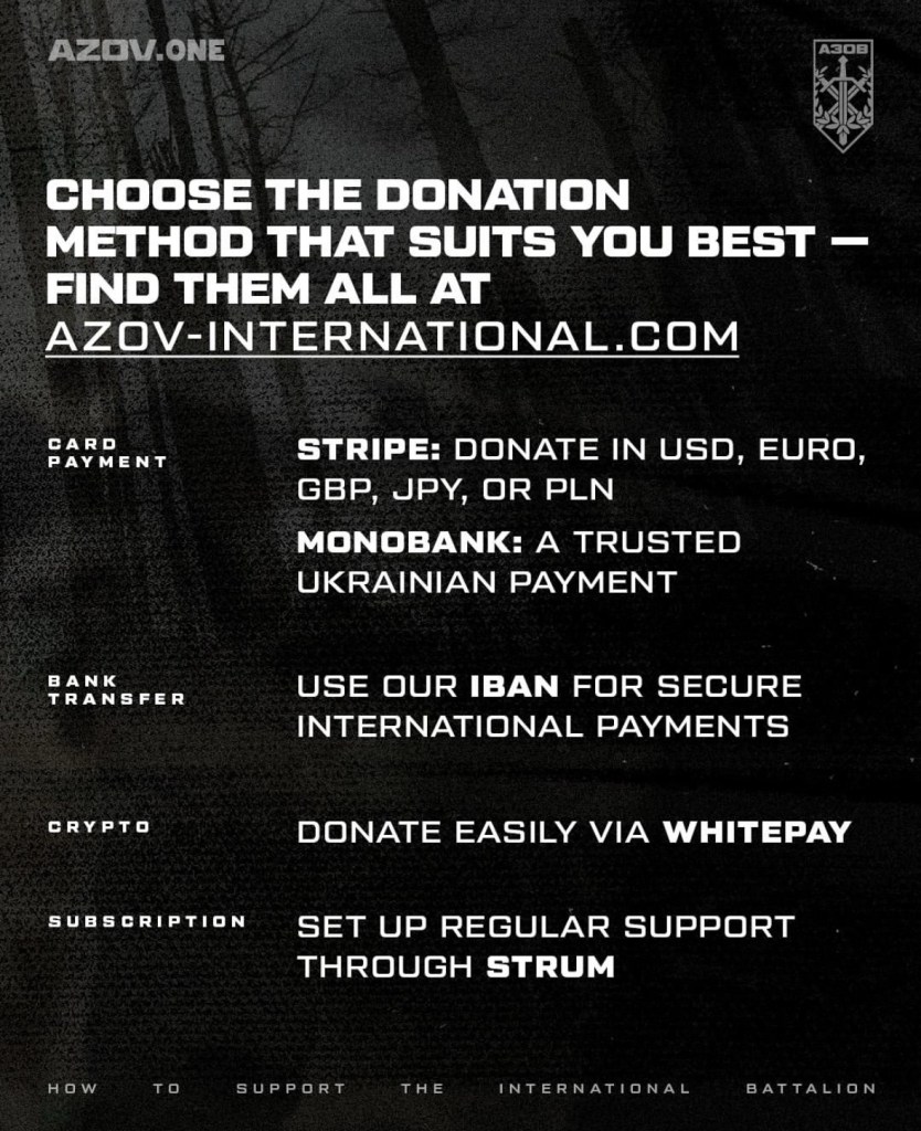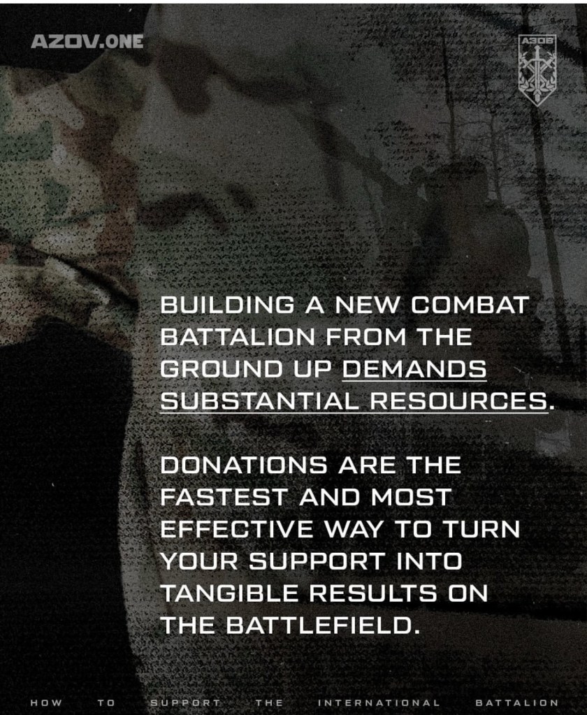 Find information on how to apply via @azov.international Follow @azov_media and @azov.one for updates Donate to equip the battalion